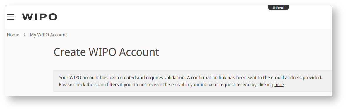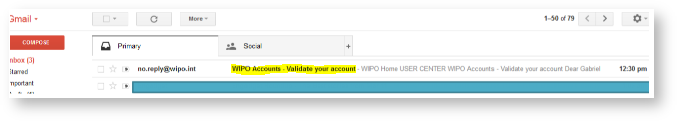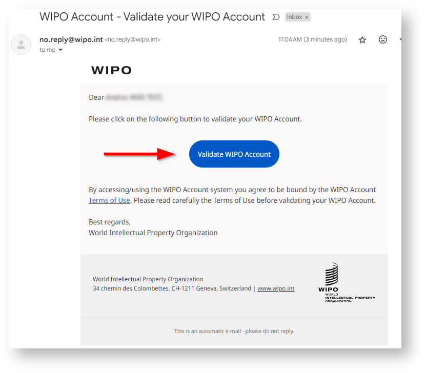 If you check your email, you will see a new email from WIPO , which includes the activation link.