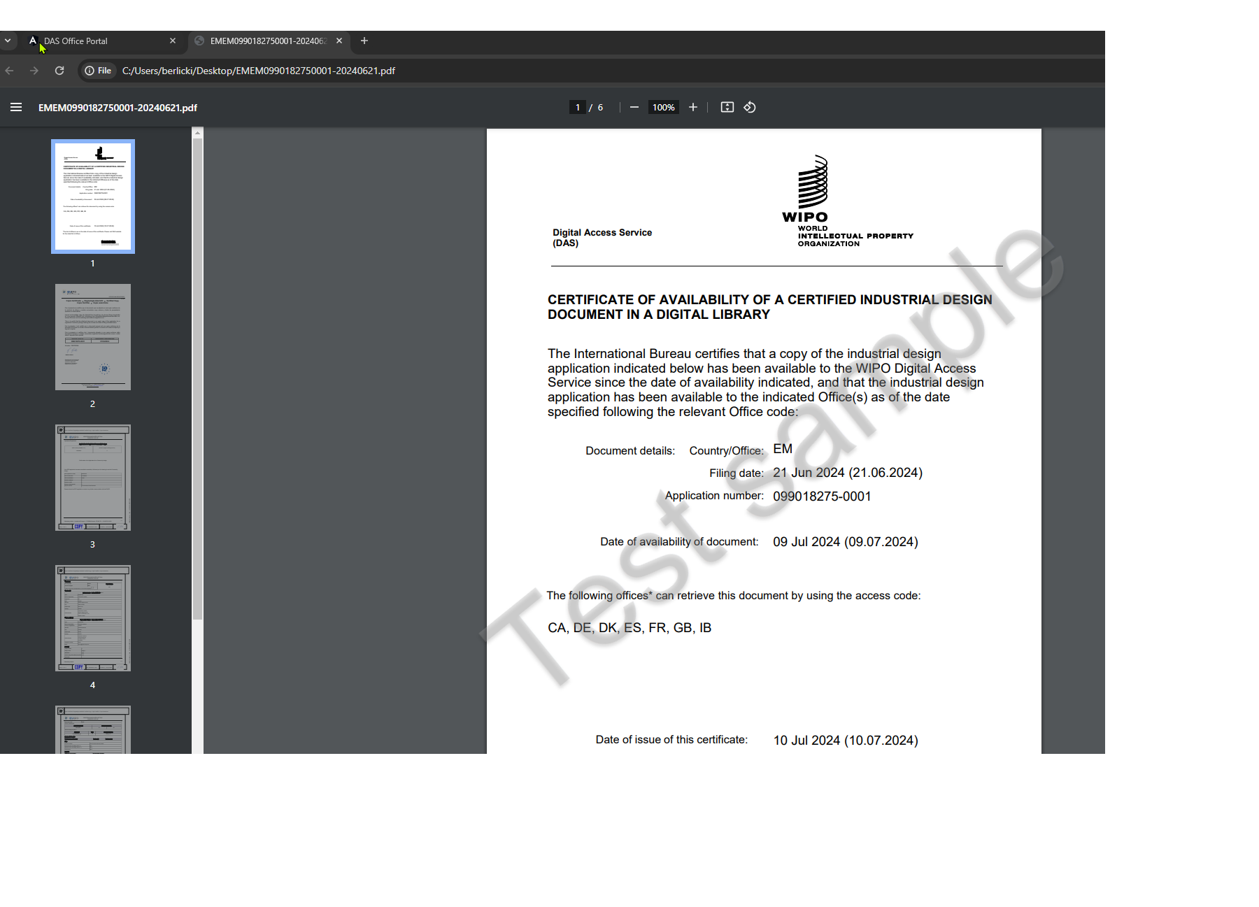 Please be aware that, due to the arrangements with the offices using the TDA protocol (CNIPA, EUIPO, EPO,JPO,KIPO and USPTO), it would take some time until the document can be downloaded, in average between 6 hours and 2 days (but it could take more time, see bellow).